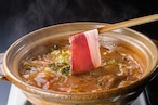 赤味噌と白味噌の調合で仕上げたまろやかな味噌が猪や野菜の素材の味を最大限引き出し、煮込めば煮込むほど素材の出汁が出ることで味噌味の深みが増していきます。
